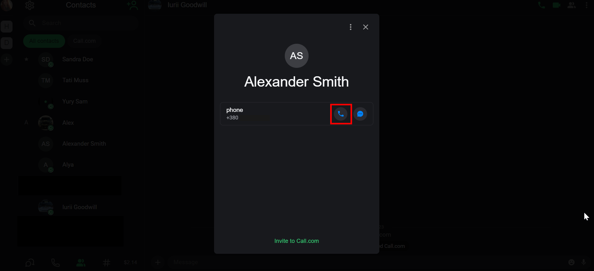 In order to make a standard phone call, you must possess a virtual number from Call.com and sufficient credits