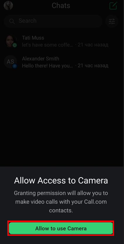Make sure, that you allowed access to camera to make video calls with your Call.com contacts.