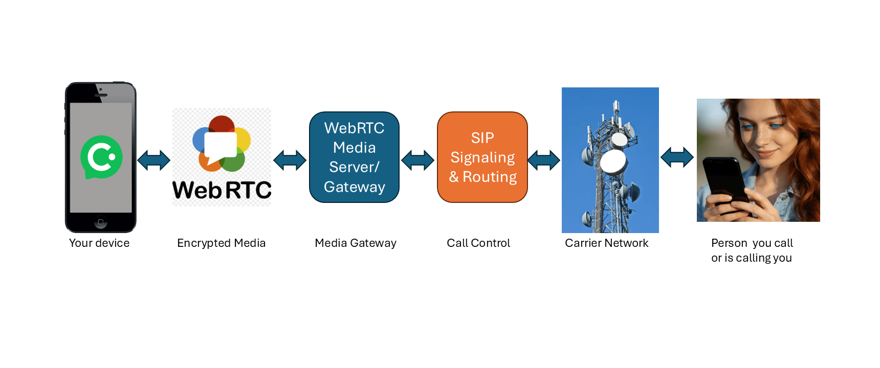 - Internet delivery. Our servers sends the call or message over the internet to your app over your Wi-Fi or mobile data connection.