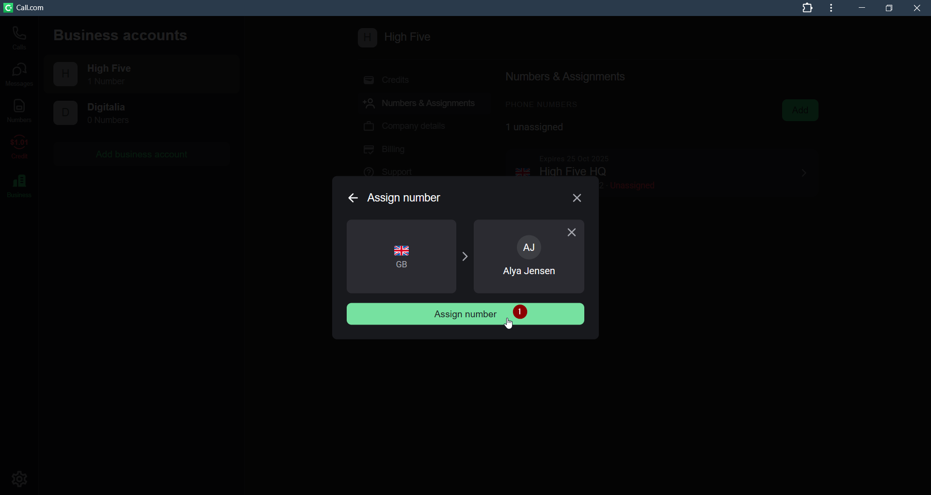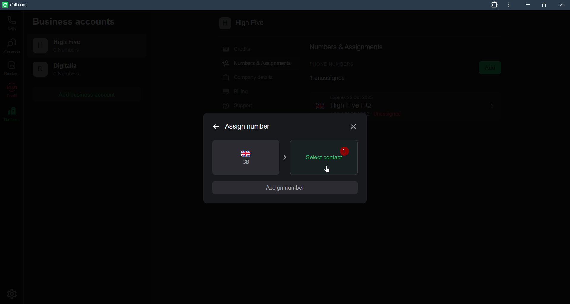 7.After you selected the contact, click the "Assign number" button and then confirm this action.
